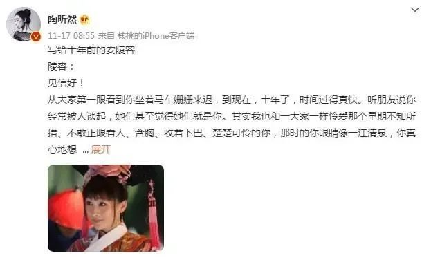 演员陶昕然曾经因为自己扮演的安陵容一角备受攻击,一度有观众发来“活该没有孩子,活该生不出来”的私信骚扰。于是,很长时间里,她都嫌少公开讨论这个角色。
