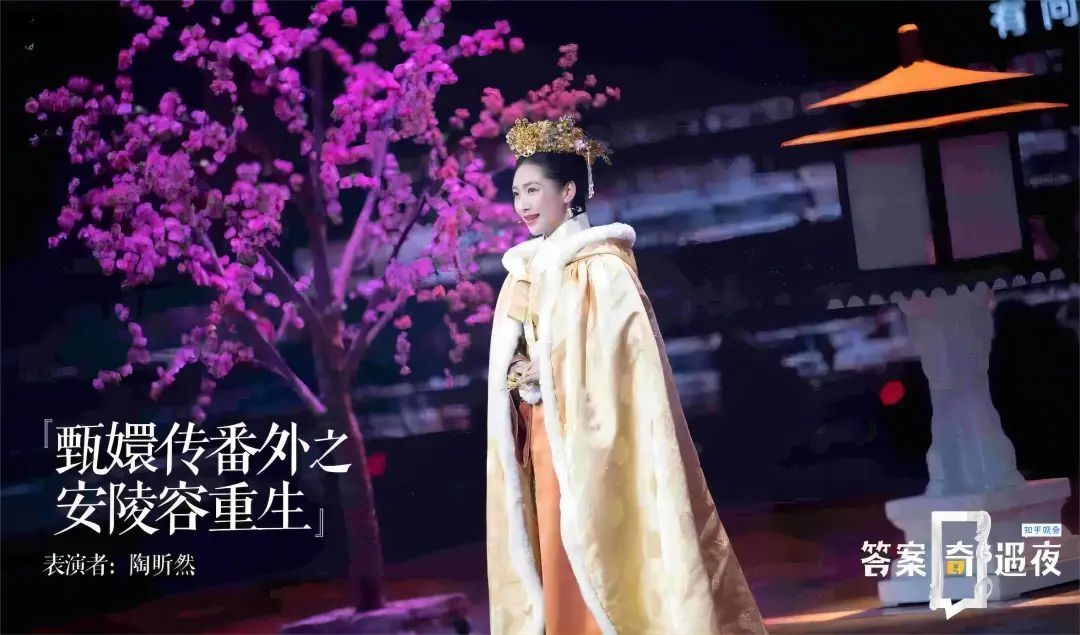 第一次在2021年的知乎奇遇夜。久未露面的陶昕然登上了那晚的舞台,重演安陵容。只是,区别于《甄嬛传》里的角色,这里的安陵容擅长人际交往、醉心医术还知人善任。