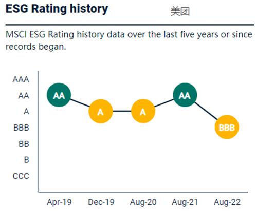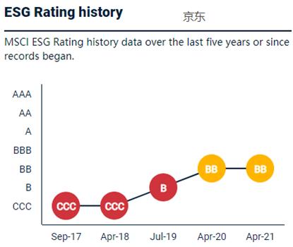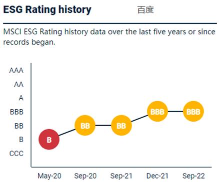 美团曾于2019年、2021年两次获得AA评级,今年降到了BBB级;阿里巴巴从2018年的B级升至2021年的BBB级;腾讯从2018年至今一直维持在BBB级;京东则从2017年最低CCC级上升至2021年的BB级;百度从2020年的B级升至今年的BBB级。对于前述互联网巨头,MSCI提示其在劳动者权益保障、数据安全和隐私保护、受政府监管程度、碳排放和人力资本开发等方面有待加强。