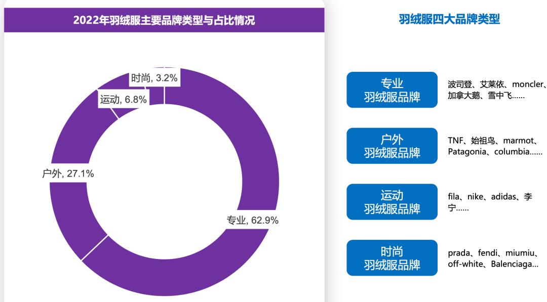 其一,根据艺恩发布的报告,2022年羽绒服主要品牌占比中,户外羽绒服、运动羽绒服品类分别占比27.1%、6.8%,仅次于专业羽绒服品牌,位居第二、第三。