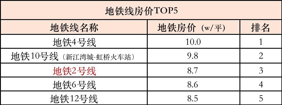 而更令人意外的是,除了4号线外,还有一条地铁线的房价同样胜过了2号线。