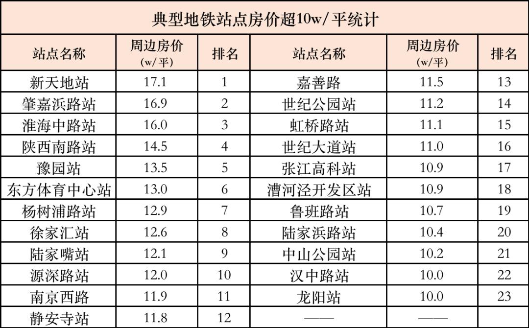 首先来看看房价排名前三,没意外都是在偏市中心的位置,老大哥新天地站。17.1w/平,繁华核心街区淮海中路能上16w/平也不稀奇。