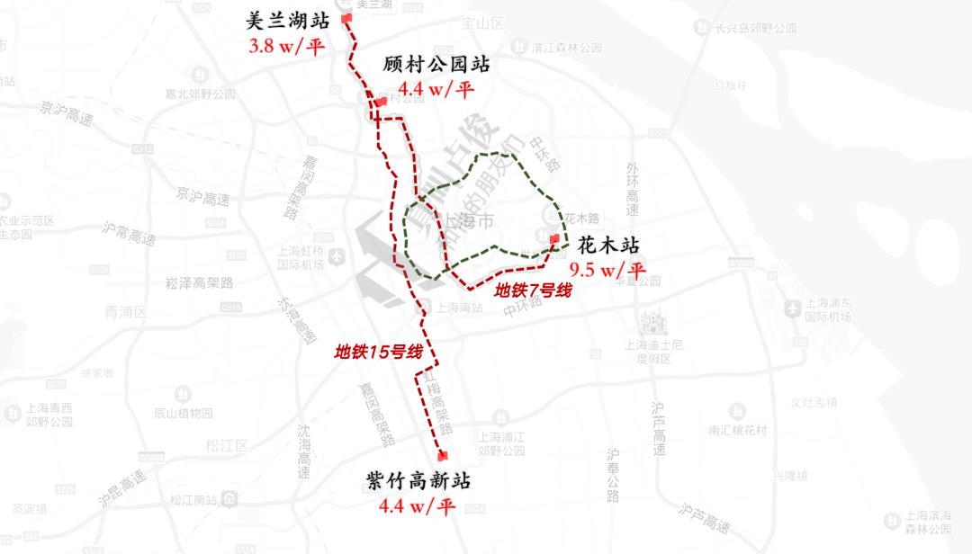 这样一条将一整个上海最繁华最核心的区域包裹在内的地铁线,自然也享受了市区板块地铁站带来的高房价。