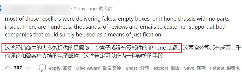不少人指出之前中小经销商卖出的“ 八折 iPhone ” 绝大多数是问题产品:假货、翻新机,甚至是空盒子。