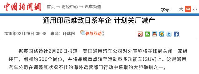 2011年,通用汽车雄心勃勃地在印尼首都雅加达附近建厂,年产能5万辆,准备把印尼打造成通往东南亚其他国家汽车出口的枢纽。