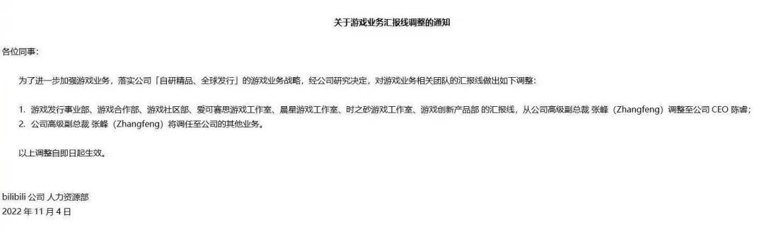 一周前,B站内部官宣了重要人事调动。公司高级副总裁、游戏业务负责人张峰被调任至其他业务线。游戏业务改由B站董事长兼CEO陈睿亲自负责,目的是进一步加强游戏业务。而不久前,B站发布的半年报数据显示,截至2022年上半年,游戏业务是B站几大收入板块中唯一业绩下滑的部分。
