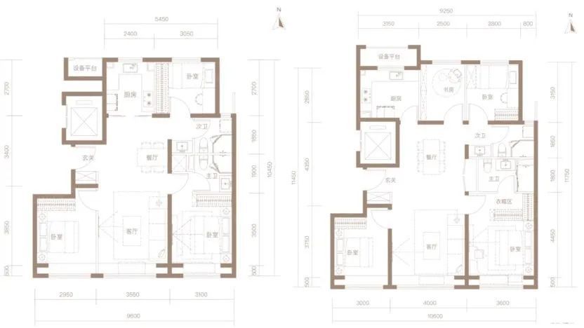 左边是102平米的户型,右边是127平米的户型,很规矩的四叶草户型,也没有空间浪费。