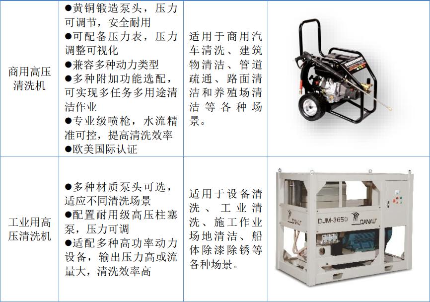 目前,公司产品广泛应用于家庭清洁、市政环卫、物业清洁、车辆清洗、石油化工、管道疏通等多个领域。