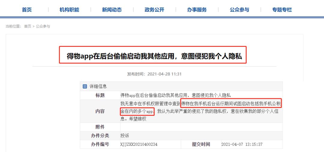 去年4月,有网友就得物在后台偷偷启动手机其他应用,向相关部门发起投诉。据该网友在网站发布的投诉信息显示,得物在手机后台运行期间,试图启动其包括手机公积金在内的多个App,该网友认为此举严重侵犯了其隐私权,意在收集其部分个人信息。