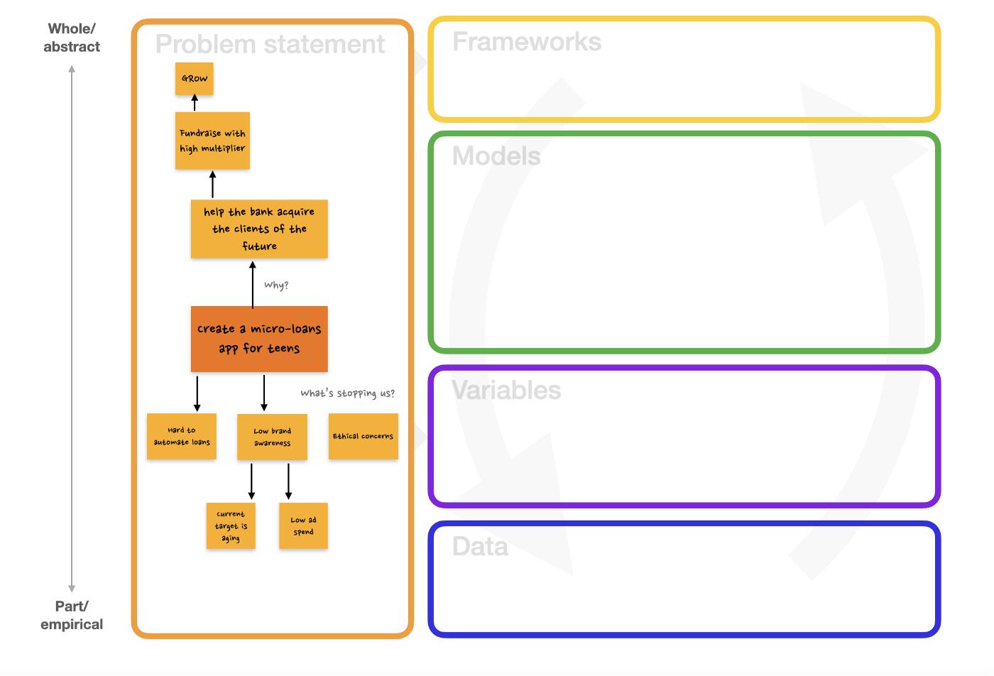 - 就输入的意义而言,它需要通过具备有效性来遵循逻辑论证的结构,也就是结果需要从遵循前提得出。如果我们意识到我们的模型提出的论点确实无效,可以做的是回溯我们的步骤到主框架,然后重新思考如何将其分解为子框架和变量:其中的任何步骤是否有必要?我们的逻辑细分符合 MECE 吗?怎么才能知道两个实体之间存在因果关系?