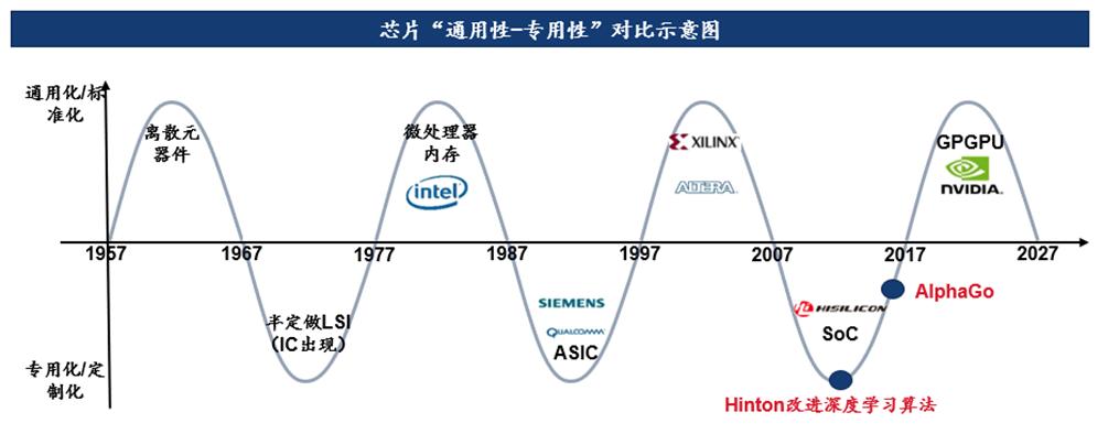 这个问题需要分别从两个领域来看, 第一是芯片设计,第二是设计工具 。半导体行业有一个很有名的周期性规律,它是在定制化和标准化之间来回徘徊,大概的周期在15年左右。也就是说整个半导体行业 在一段时间内不会有所谓的百花齐放,而是标准化,整个芯片的产量由3~5个标准的产品完全主导 。上一代标准化的大趋势就是利润驱动,像X86指令集的PC,以及后来的手机,特点就是种类少,量非常大,它是靠量来降低成本。 另一个就是百花齐放的周期,属于高度定制化周期 。在这个周期里会看到各式各样的定制化芯片,产品的竞争力不是靠量而是靠定制化,例如ASIC、SoC都是这个大趋势下的产物。回顾半导体50年的历史,它就是在这两大周期中徘徊,最早是日本人发明的,没有摩尔定理这么有名,但这是一个我们大家都清楚的定律, 目前我们正处于下一个定制化的周期 。