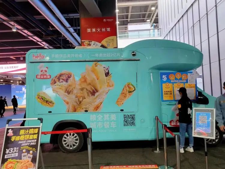 这些餐车灵活而快速地提供餐食,很好地分流了高峰期用餐的人群,满足了进博会规格高、参与人数多、消费需求集中的特点,消费者透过打开的车窗就能拿到现场制作的产品,在移动餐车前即时享用。
