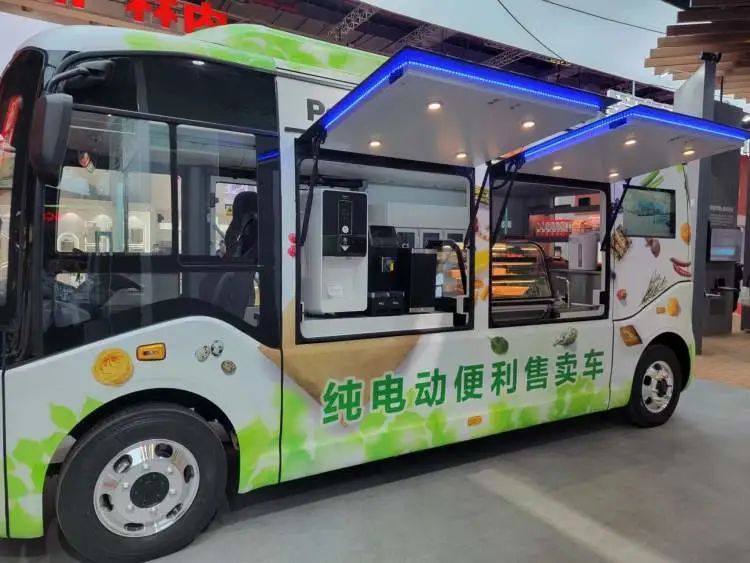 比如由宇通专用车与松下电器(中国)有限公司联合打造的纯电动便利售卖车,在进博会展馆亮相。