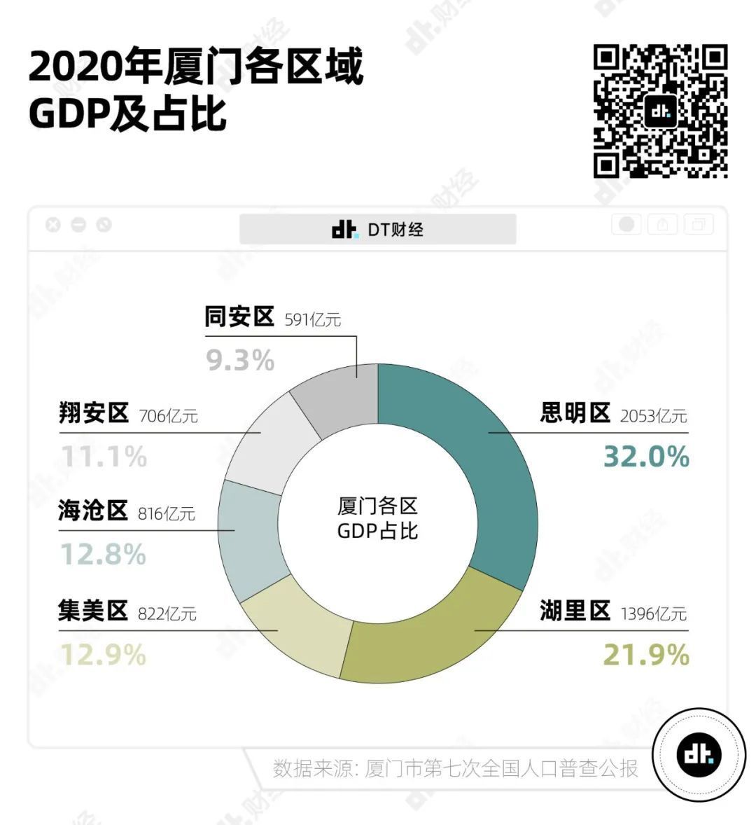 光是思明区一个区的GDP,占比就接近整个厦门市的三分之一,是同安区的3.4倍、翔安区的2.9倍。