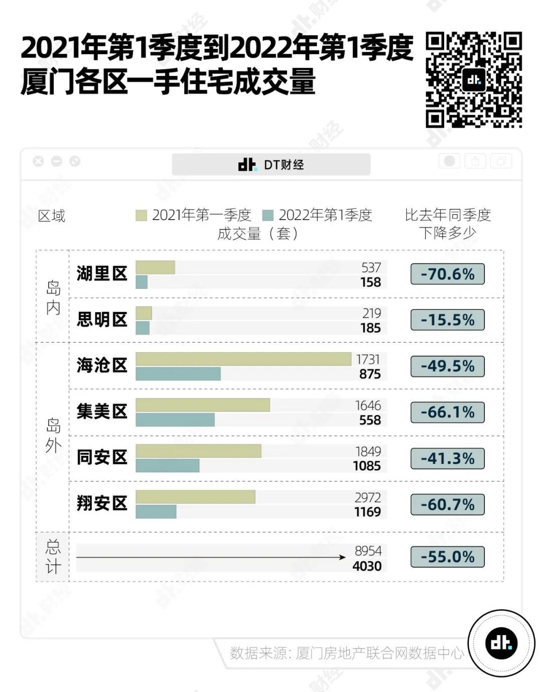 即使是在今年,厦门乃至全国住宅成交量都在整体大幅度下滑,在整体成交量下滑了55%的情况下,地理位置极佳的思明区,对比去年同季度的一手住宅销售量,也只降低了15.5%。