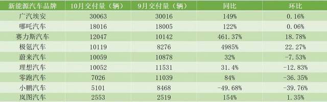进入11月,各大造车新势力都陆续交出了自己的成绩单。从销售数据来看,广汽埃安表现依旧出色,10月份销量达到了30063辆,排在了造车新势力的第一名;哪吒汽车以18016辆的销量排在了第二位;而第三名则是赛力斯,10月的销量也达到了12047辆。