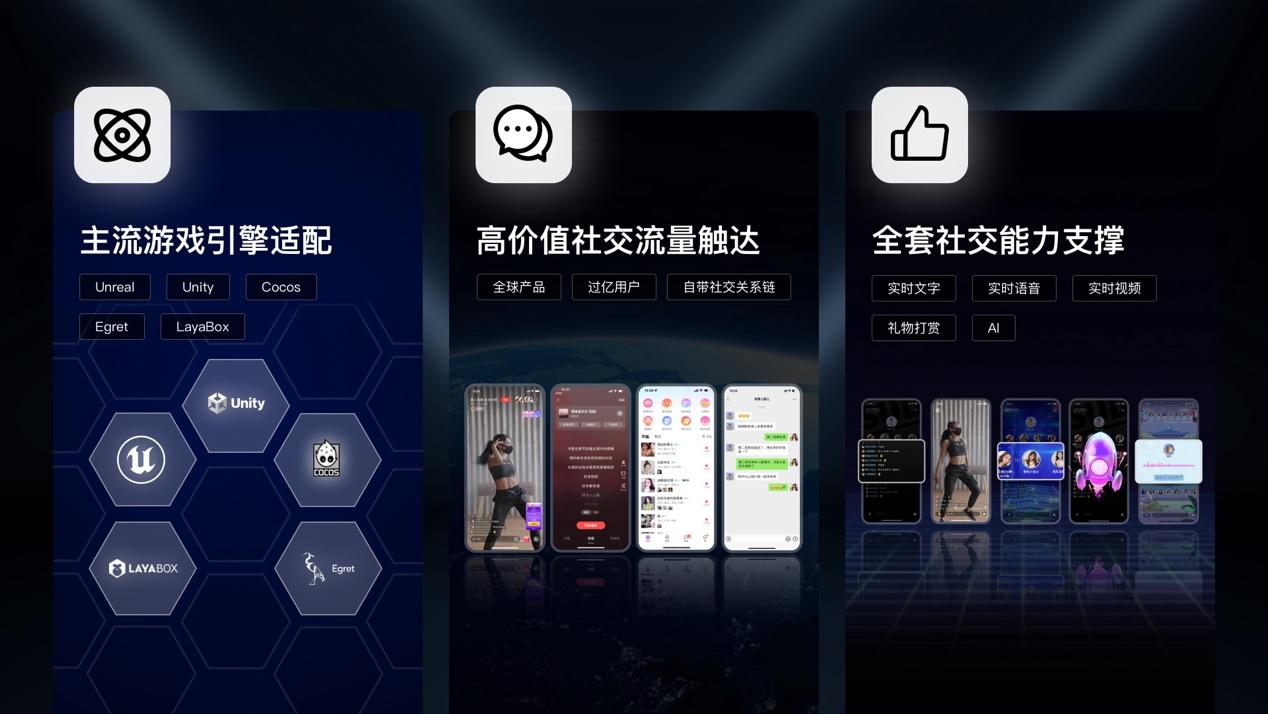 第三,通过混跑技术和融合技术,能够实现游戏场景、社交场景、付费场景、特效场景等多个复合场景的快速融合。将社交产品复杂的开发成本标准化,降低开发者获取社交能力的门槛。SUD开放平台为开发者提供实时文字、实时语音、实时视频、礼物打赏、AI服务等多功能的选择,为其增加有关社交场景的更多想象和实现能力。