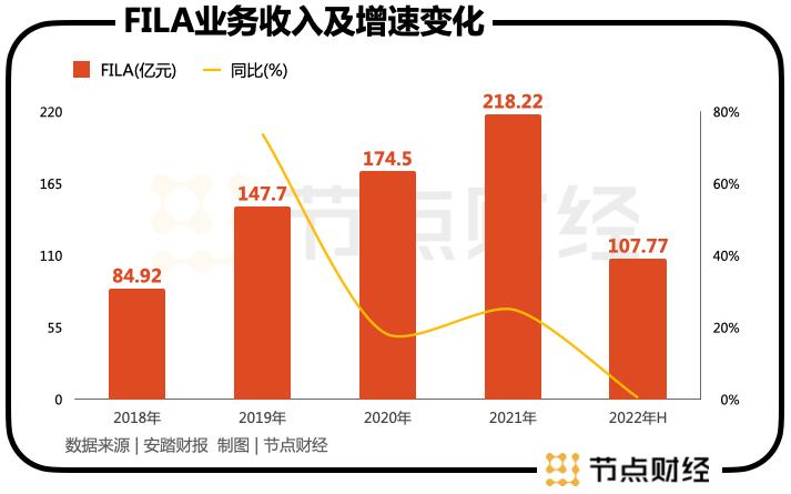 财报数据显示,今年上半年,斐乐的同比增速下滑至0.5%,再往前追溯,自2020年开始,斐乐的增速就直线暴跌到20%左右。