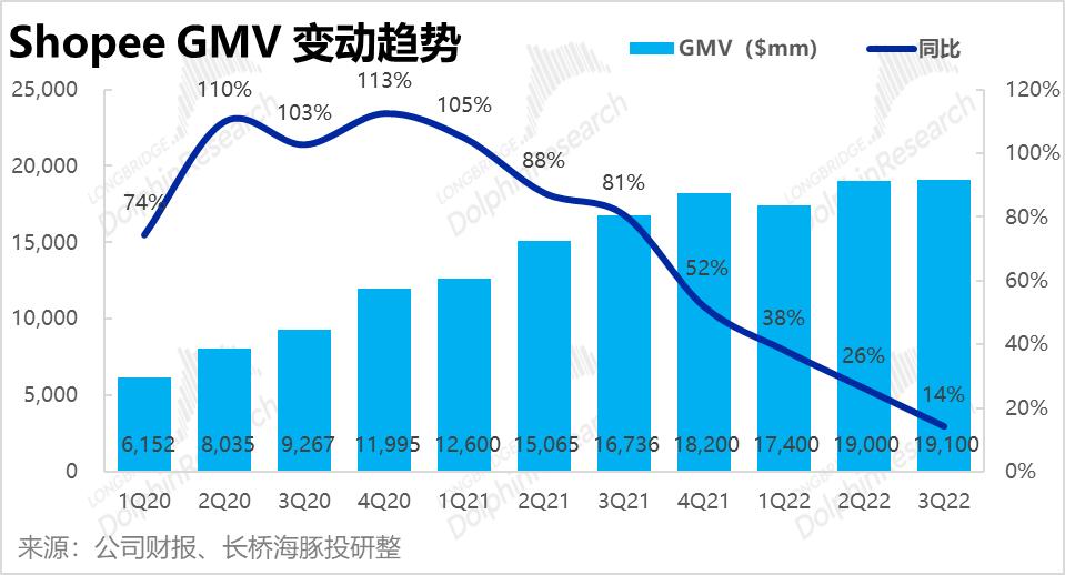 具体来看,本季度Shopee实现GMV191亿,同比增速进一步下滑至14%,比上季度190亿的GMV完全无增长,但实际表现与预期基本一致,可见增长放缓早在市场预料之中。
