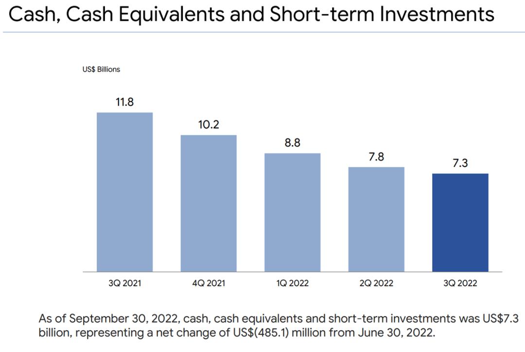 从现金流的角度,本季经营性现金流出幅度已下降到1.7亿美元左右,净现金余额也保持在了70亿美元以上,虽仍在继续流出,但好在幅度已大幅缩减。