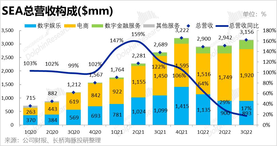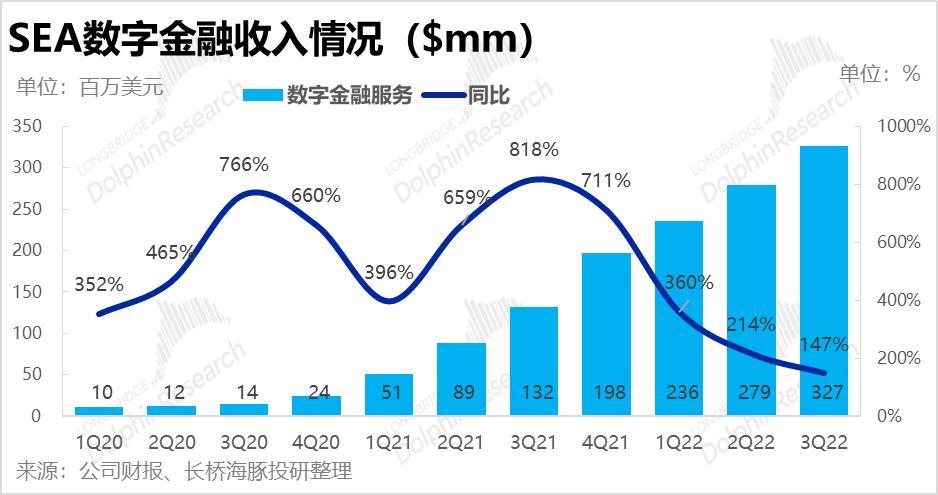 财报表现上,SeaMoney数字金融业务本季实现收入3.3亿元,高于市场预期的3.1亿元,同比增速也还高达147%,继续业务早期的高速成长阶段。