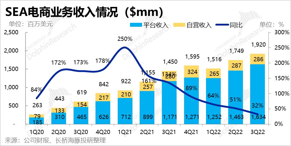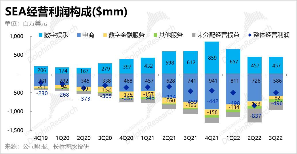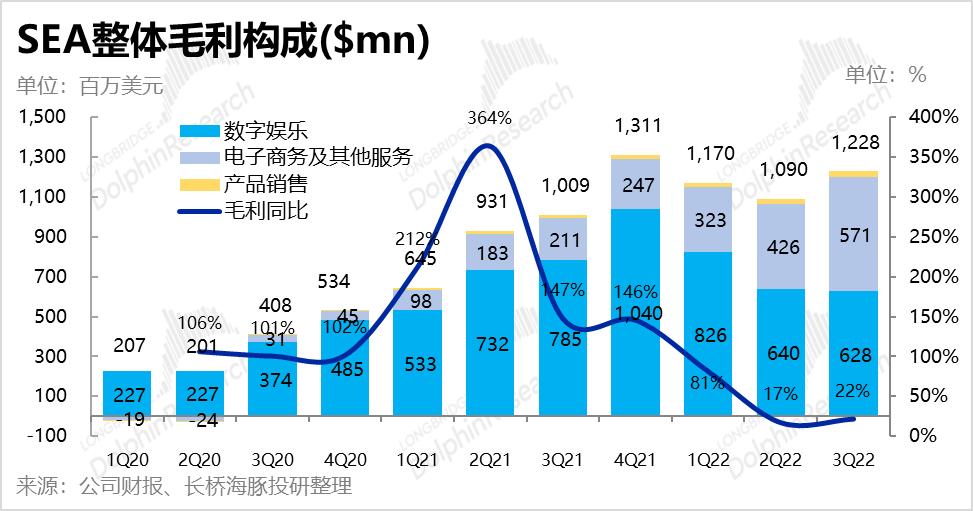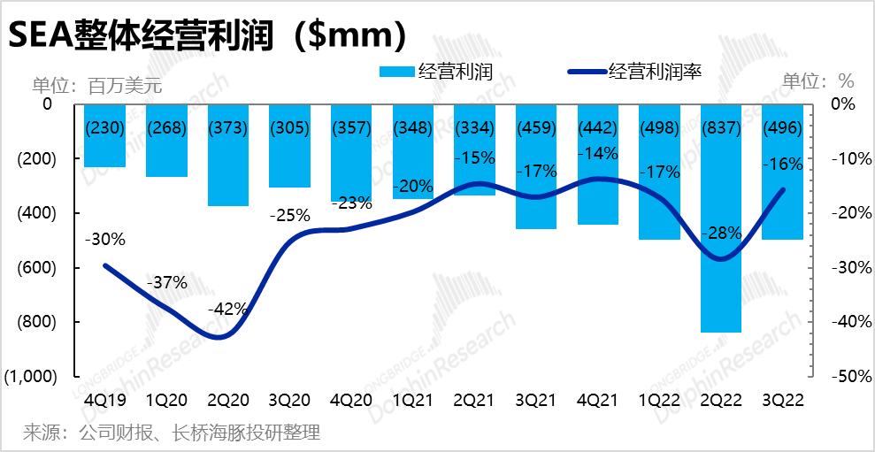 由于集团游戏板块已经烂透,市场对其也已不抱希望。海豚君认为,市场核心关注的点只剩电商板块的减亏速度,甚至连GMV的增长重要性也已下滑。因此,在公司接连推出巴西以外的其他南美国家本地市场(还保留跨境业务),且在剩余的东南亚市场也大幅裁员并显著提高变现率后,原本已增长神话著称的Shopee本季GMV增长也已完全停滞,但对此市场大概率也会look through,下文将分析的盈利情况更为重要。