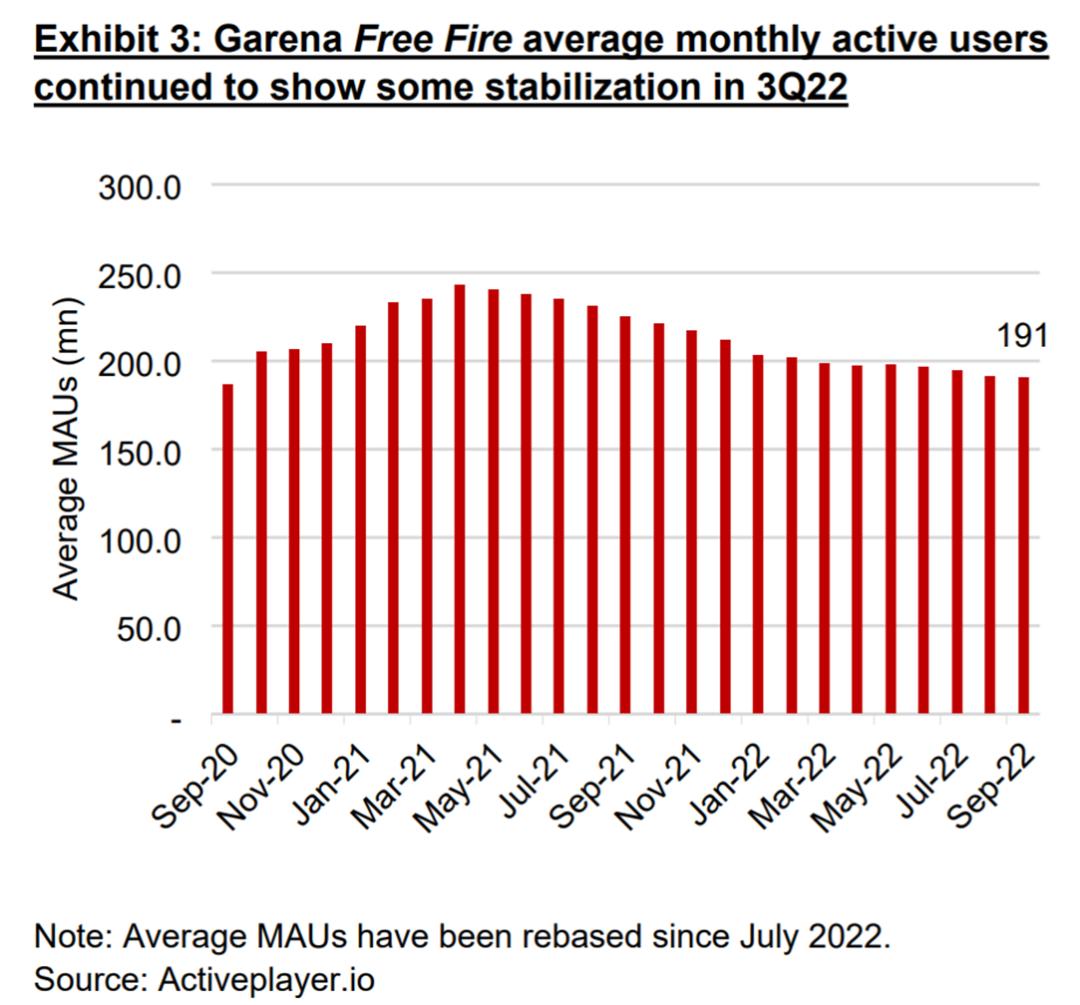 实际上根据第三方机构数据,Free Fire的月活跃用户数在今年三月后已基本企稳,这也是卖方预期用户会停止流失的原因。海豚君认为结果与预期不辅的可能原因是:Free Fire外公司的其他主要游戏比如王者荣耀、使命召唤手游等也都已处在生命后期,大概率也同样在流失用户。同时,拳头已宣布2023年起将收回Garena王者荣耀的运营权,这对Garena的用户规模又会是个大打击。