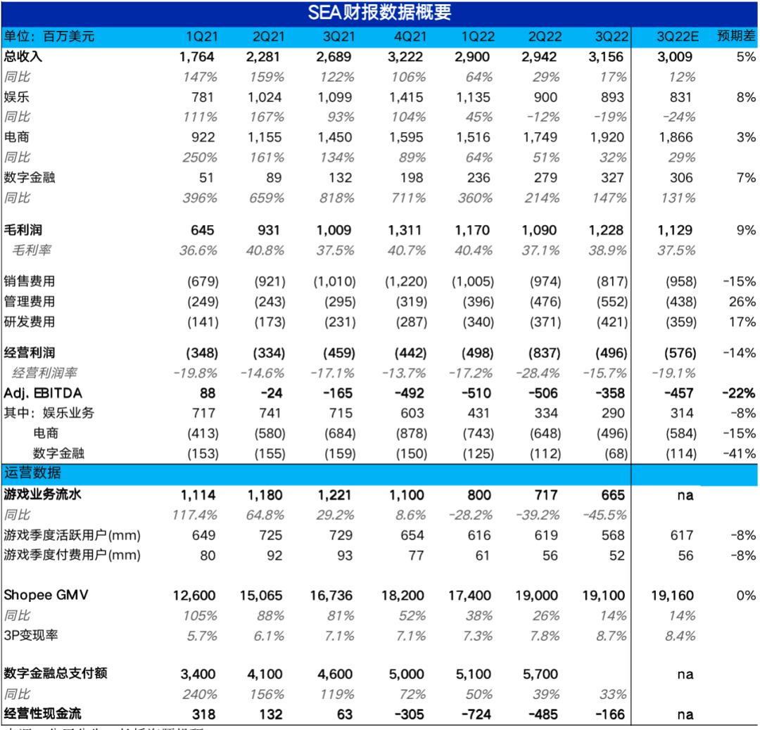 11月15日晚美股盘前,SEA冬海集团公布了2022年三季度财报,详细来看: