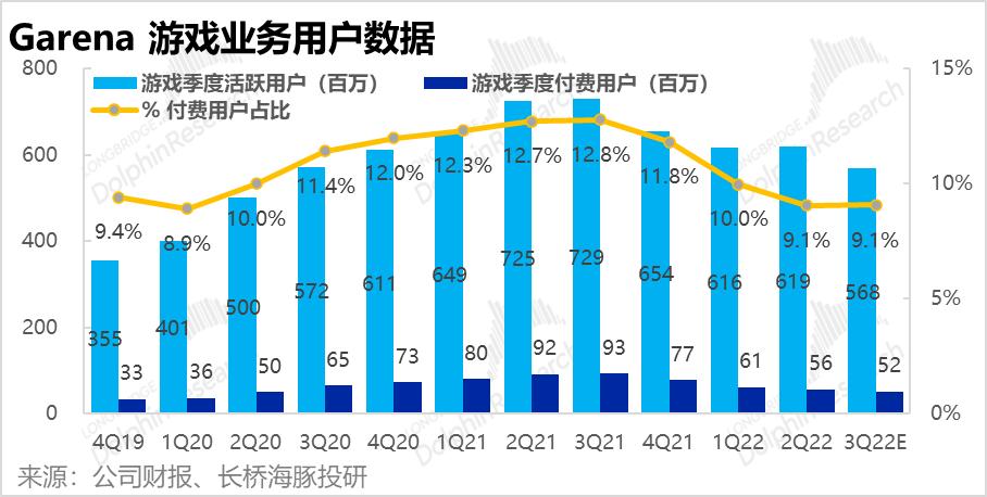 整体上Garena游戏板块延续了过去几个季度的趋势,无论是活跃用户、付费用户、游戏流水还是收入都仍在继续下滑,且下降幅度越发扩大,仍未止血。