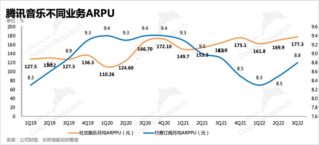 因此我们看到,在线音乐业务中,订阅用户的ARPPU继续提升,从二季度的8.5元/月上升至8.8元/月。但三季度其他在线音乐的ARPPU提升,则主要由于周杰伦的专辑销售和广告对应的单用户价值增加带来。