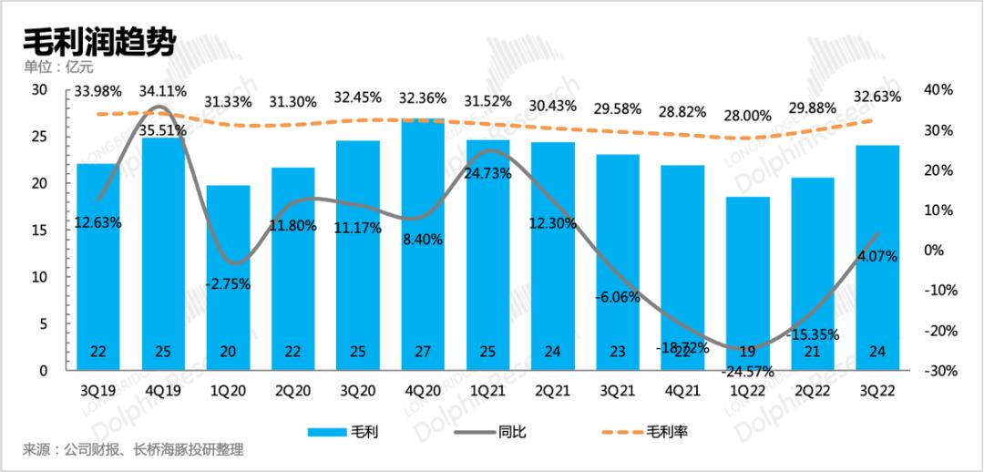 和二季度的财报一样,三季度的利润依旧是财报最亮眼以及主要超预期的地方。其中成本的优化贡献更大,三季度毛利率达到32.6%,环比提升了三个百分点。主要源于高分成的直播业务,收入占比下降,同时高毛利的广告收入增长,对总营收贡献增加。