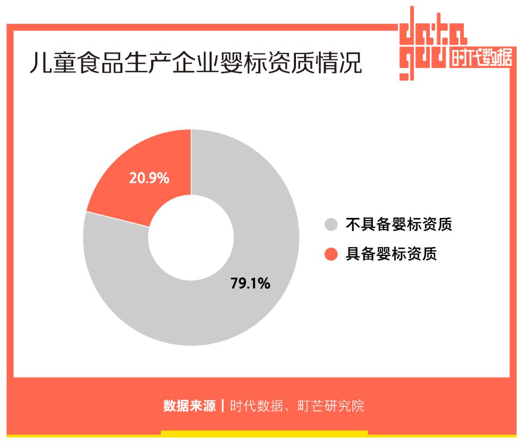事实上,目前大部分儿童食品生产商都不具备婴标资质。据町芒研究院,具备婴标资质的儿童食品生产仅占20.9%。这也导致相关产品的生产缺乏约束,有关婴幼儿零辅食食品质量问题的投诉频频出现。