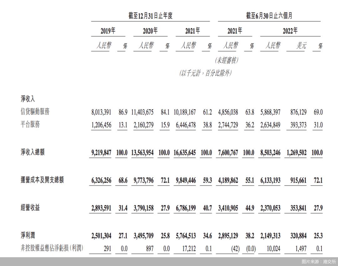 从利润规模和利润率来看,360数科是一家非常能赚钱的公司,2019年至2021年,其净利润分别为25亿元、34.9亿元、57.6亿元。今年第三季度,360数科营收为41.441亿元,净利润9.884亿元,利润率高达23.8%。