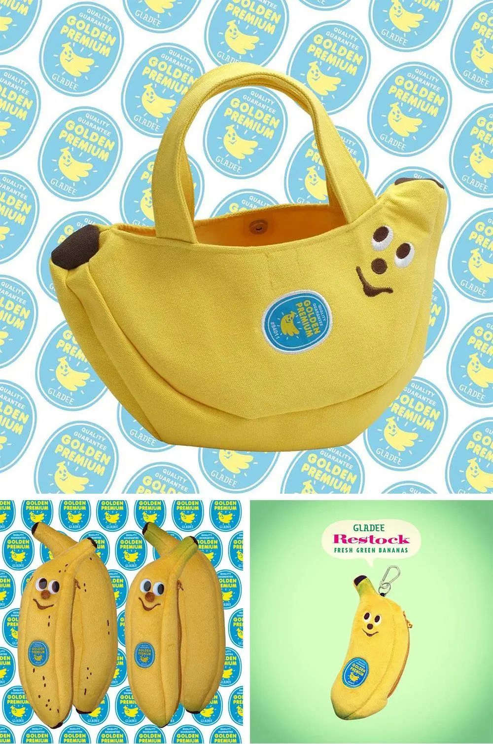 做香蕉周边做出了名声的日本品牌 Gladee,将香蕉包的种类拓展成了大家族,包含了钥匙包、手挎包、餐具盒等等。
