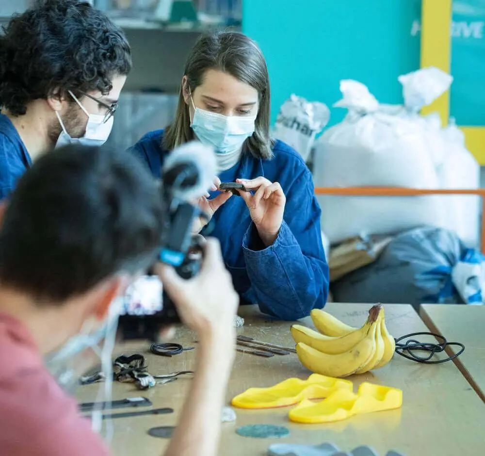香蕉一生中拥有的垃圾不仅仅包含生产过程中的废料,还有食用之后被扔弃的香蕉皮。在吃掉香蕉占比 2/3 的果肉后,剩下的 1/3 果皮也可以变成环保材料,制作更多有用的物件。