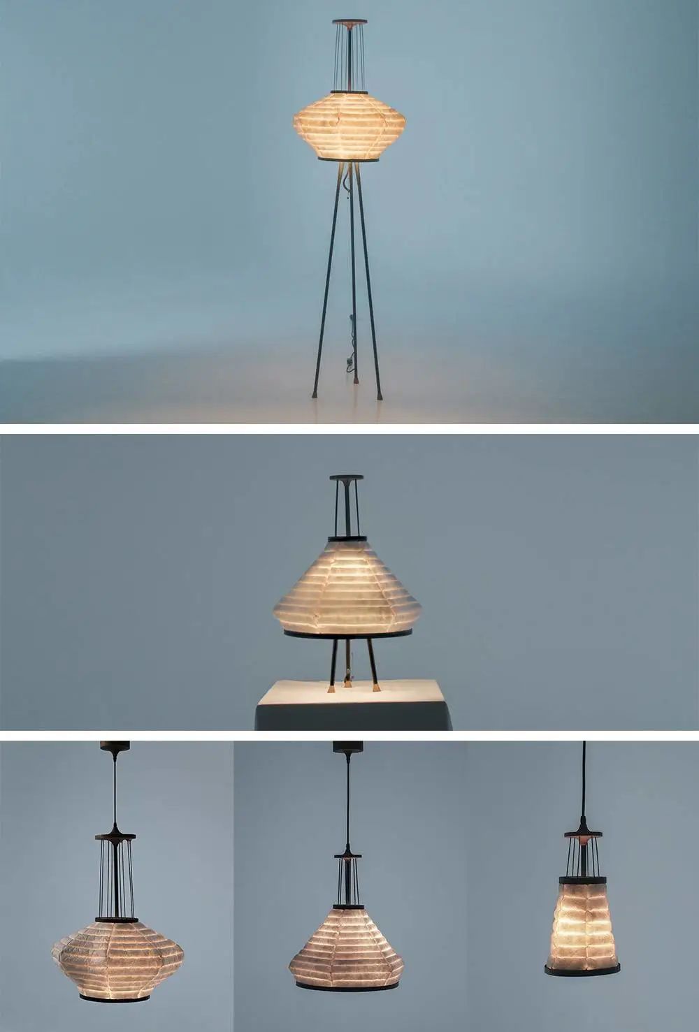 命名为「Tamashi Jiwa——空间的灵魂」的灯具就这样诞生了。这是一系列手工制作的日本纸灯,包含台灯、吊灯和落地灯多种款式。