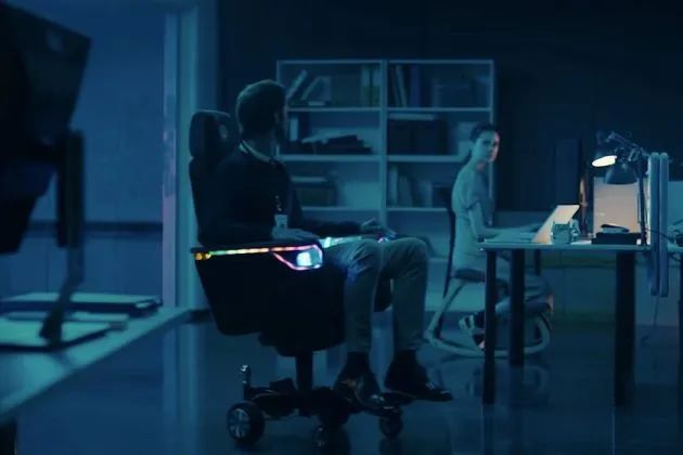 但它又不是完全意义上的办公椅,因为它还带日间行车灯、立体声音响系统、360度无死角传感器和一个备用摄像头等一系列汽车该有的配件。