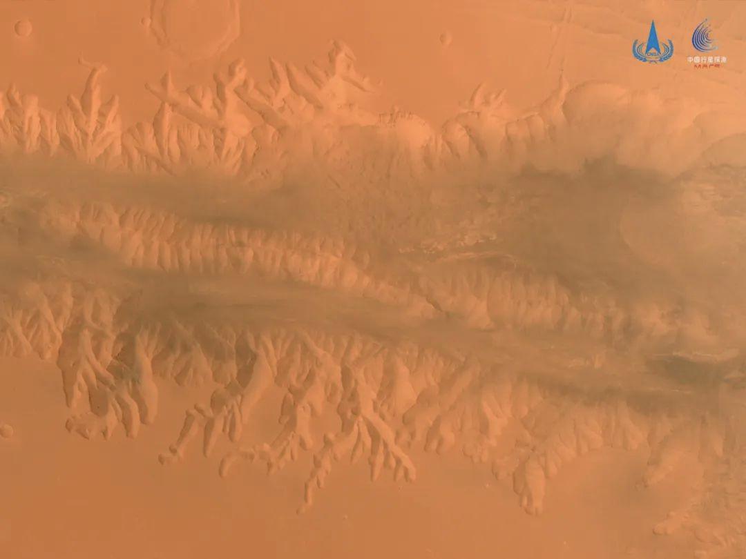 今年4月1日祝融号中分辨率相机拍摄的火星水手谷局部地貌,图源:国家航天局