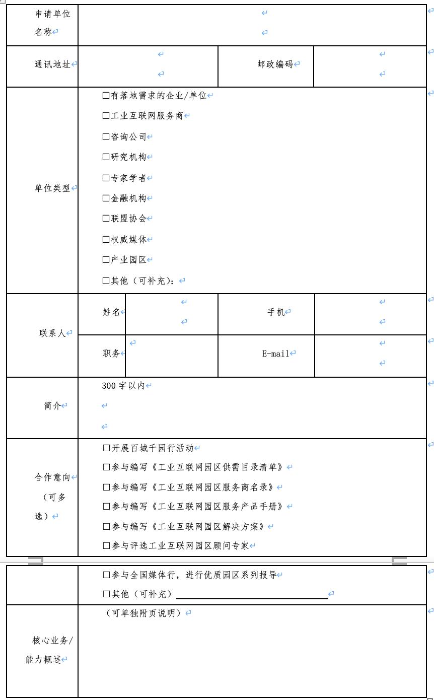 附件:“工业互联网百城千园行伙伴计划”成员单位申请表