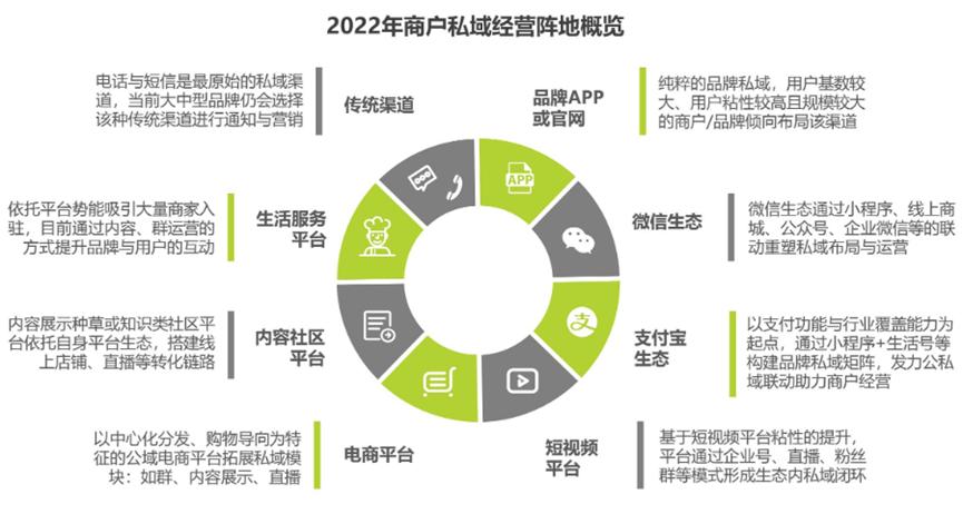 近一年,以上平台也在抢夺私域布局这块肥肉:2021年,抖音正式官方提出抖音私域概念;2022年微信直接提出私域2.0,公域辅助私域;2022年,支付宝开放8大核心公域流量,升级繁星计划、乘风计划……