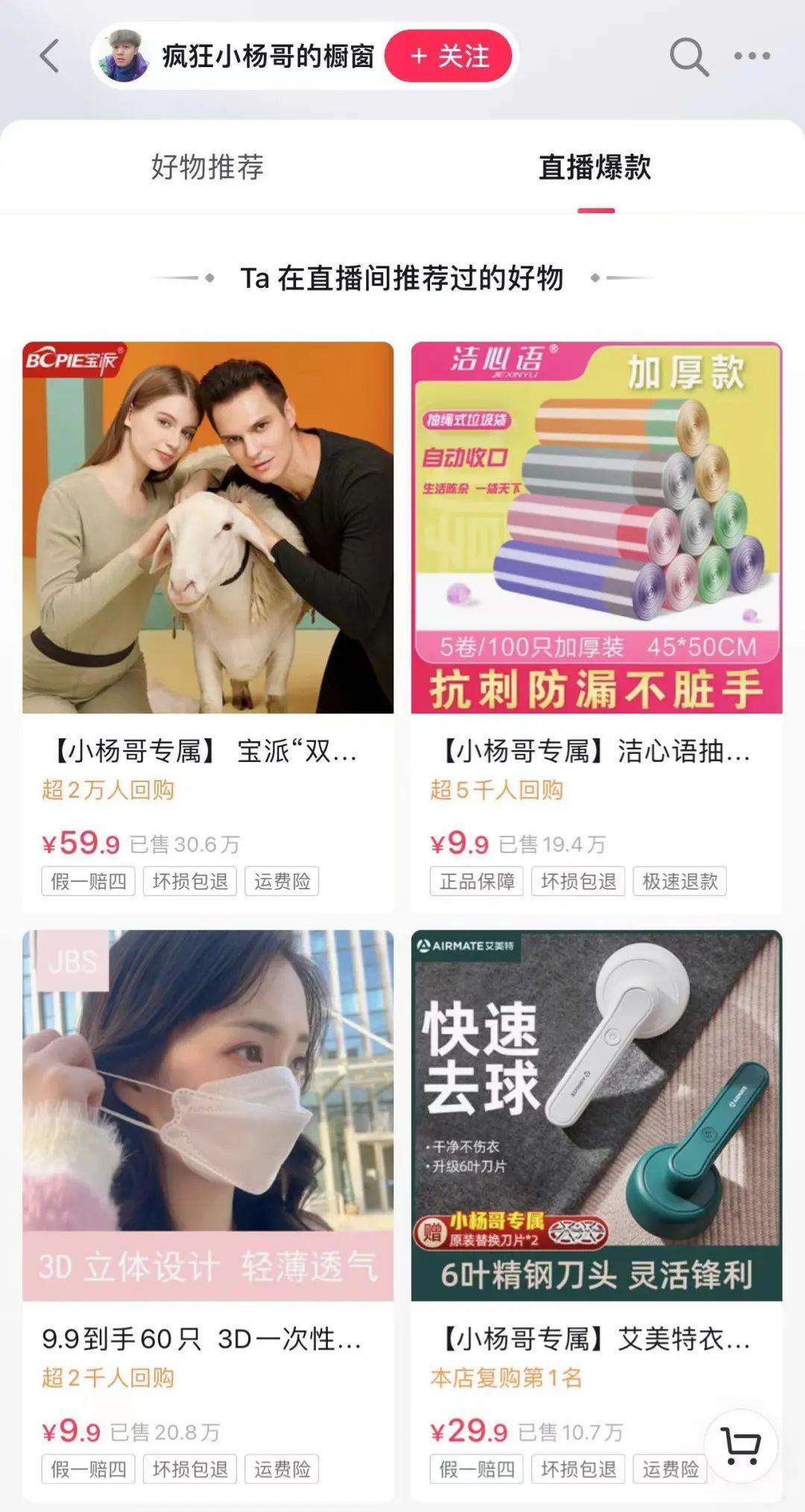 而疯狂小杨哥直播间的选品也颇有讲究,平均客单价多在100元以内,大多以食品、家居用品等日常消费品为主,使得消费者在决策时的考虑门槛低,容易激起消费者购买欲望。