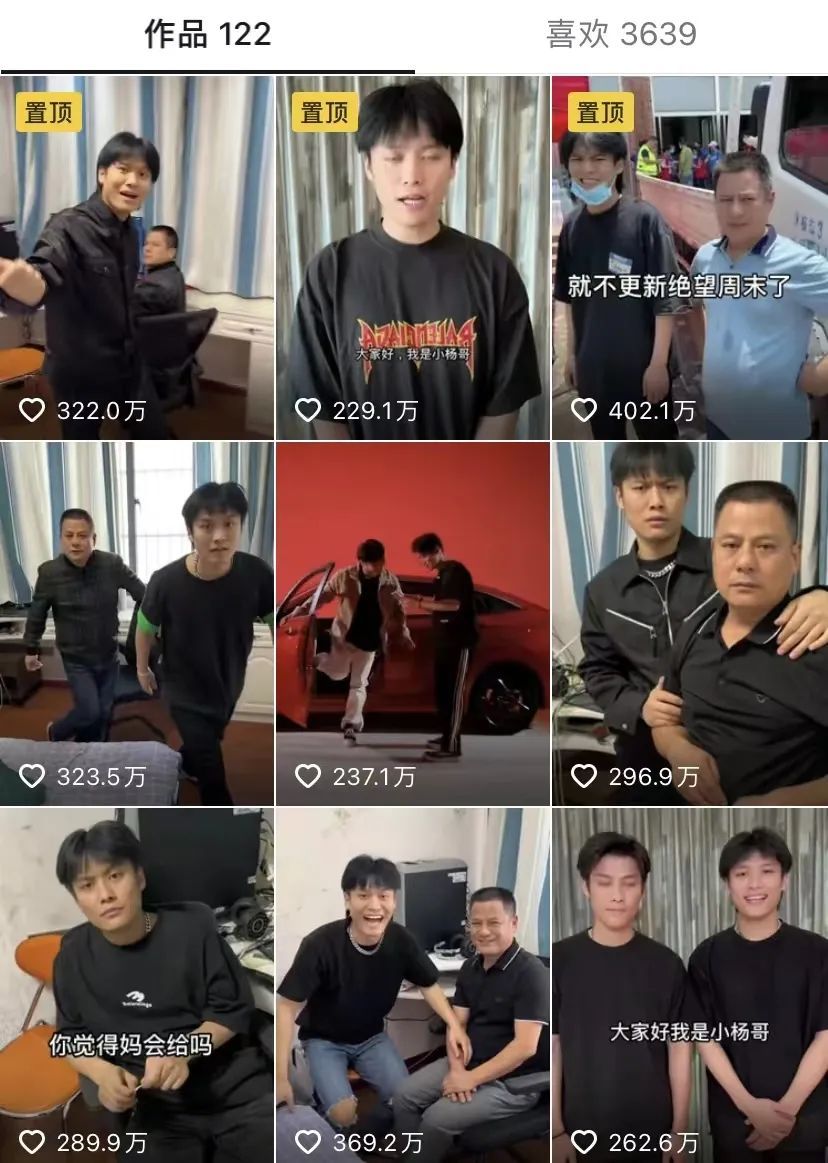 后来,疯狂小杨哥便聚焦家庭生产内容,哥哥、弟弟和老爸都成为其创作中常出现的素材,塑造了“作死弟弟”“网瘾老爸”“暴力老妈”等角色,产出了“为弟弟戒网瘾”“弟弟的绝望周末”等系列内容,仿佛抖音版“搞笑一家人”。据新抖数据统计,截至今年4月,疯狂小杨哥已在抖音创作出23条300万赞以上的视频。