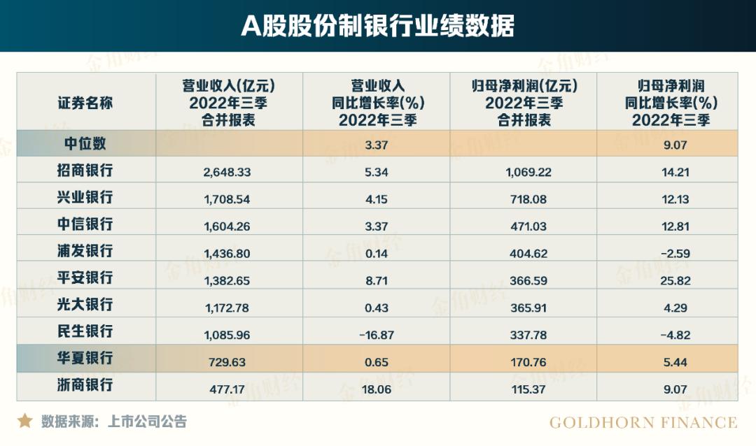 今年前三季度,华夏银行营收和净利润增速均大幅放缓,跑输A股上市股份制银行的中位数。