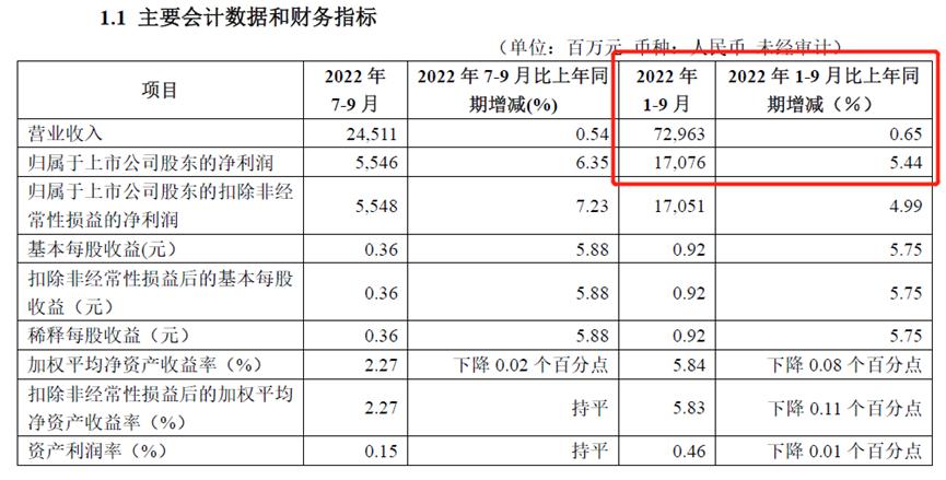 前三季度,华夏银行实现营业收入729.63亿元,同比增长仅0.65%;实现归母净利润170.76亿元,同比增长5.44%。