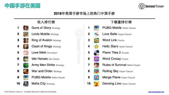 总体而言,在2018年,中国手游已经在北美市场展现自己的实力,其中以SLG为收入主力,超休闲游戏为下载主力,除了风格各异的SLG外,《奇迹暖暖》、《PUBGM》的出现让中国厂商看到了更多的可能性。