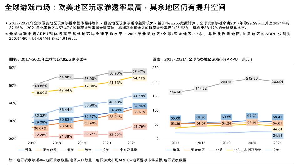 根据当时Google和NewZoo合作发布的《2016年全球游戏市场报告》显示,2016年全球移动游戏市场总规模达369亿美金,亚太地区以216亿美元的收入份额成为全球最大的移动游戏市场,中国移动游戏收入居全球首位。移动游戏正成为整体游戏市场中增长最快、收入最高的细分市场。北美移动游戏市场竞争开放,非北美移动游戏公司在北美市场上的占比43%,而中国游戏公司目前在北美市场的份额仅占比3%~4%,相对较低。