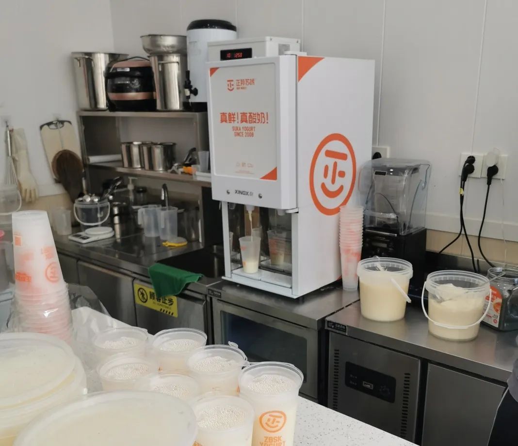 再举个例子,安徽的正邦苏咔是一家以酸奶为特色品类的连锁茶饮品牌。在其门店当中,有一台别的品牌没有的设备——酸奶机。