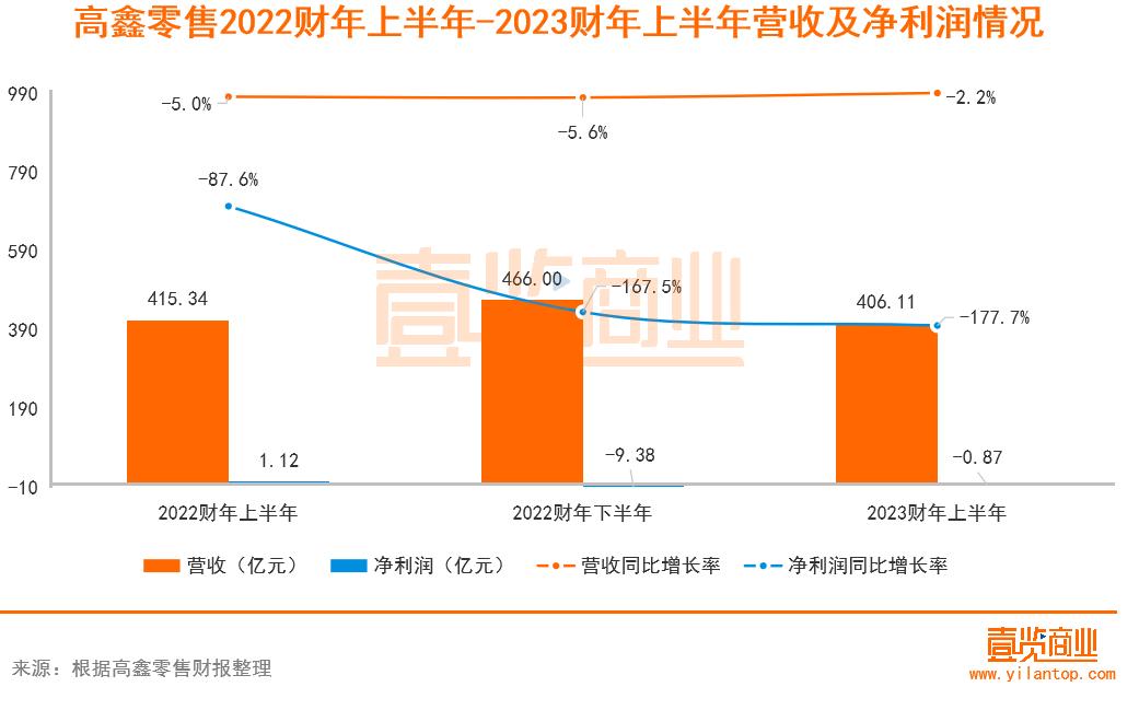 11月15日晚间,高鑫零售发布了截至9月30日的2023财年上半年业绩报告。报告期内,高鑫零售的营收、净利润和大店等核心指标表现严峻,具体看: