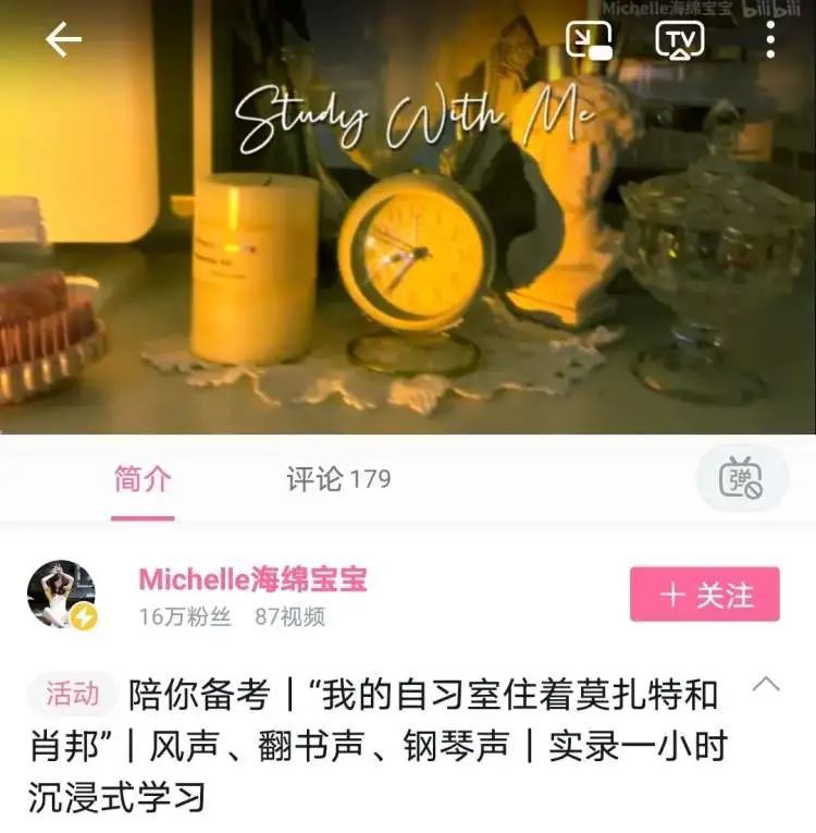 来感受一下沉浸式自习。/B站up主“Michelle海绵宝宝”截图