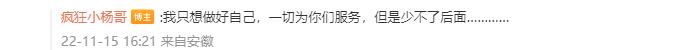 疯狂小杨哥的微博账号也转载了这则声明。在微博评论区,小杨哥回复网友评论,称:“我只想做好自己,一切为你们服务,但是少不了后面……”